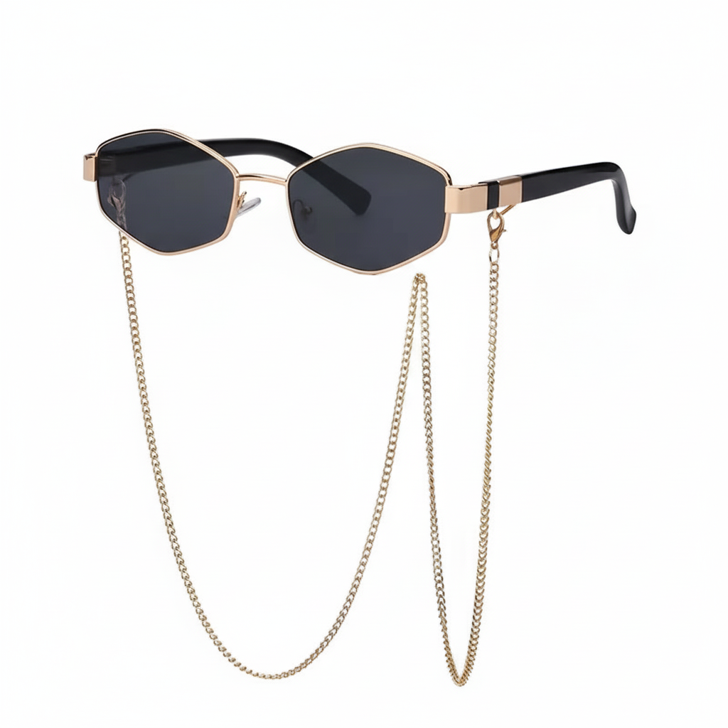Women's Sunglasses With Chain Elevate your eyewear collection with these sophisticated women's sunglasses featuring an integrated chain design. The chain detail adds a contemporary edge while serving as a practical retention system, ensuring your shades stay secure during active moments. Crafted with UV protection lenses, these sunglasses shield your eyes from harmful rays while delivering a polished aesthetic. The combination of functional design and fashion-forward styling makes them an essential accessory for any wardrobe. Whether you're navigating city streets or enjoying outdoor activities, this piece seamlessly transitions from day to evening wear.